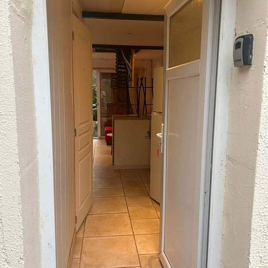 Maisonnette mitoyenne à louer 40m2 environ avec une chambre à l’étage, Idéale personne seule et avec facilité pour monter car escalier escamotable Personne sérieuse uniquement Charges mensuelles : 80€ pour eau électrique et wifi Petit jardinet d’un côté et terrasse privative de l’autre Meublé