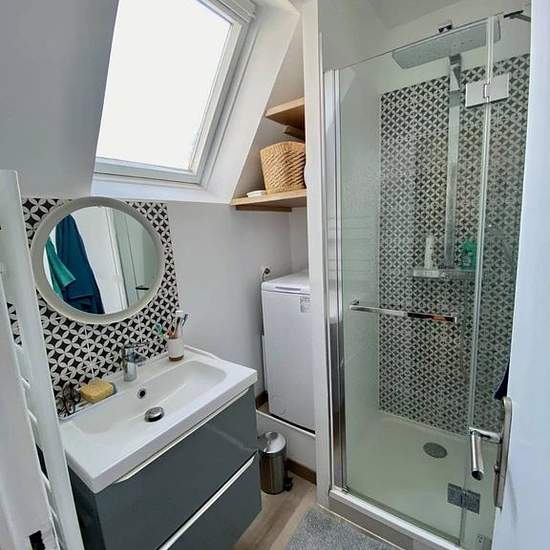 Cette maison se situe dans un environnement calme et à seulement 10 minutes à pied du centre ville et des commerces, elle se compose au rez de chaussée d'une belle pièce de vie avec coin cuisine entièrement équipée, avec d'un côté une courette et de l'autre une belle terrasse d'environ 50 m2, wc, à l'étage, un grand palier (canapé lit 160) distribuant une chambre avec 2 lits simples et une salle de douche. Place de parking extérieur. Idéal pour une famille de 4 personnes.