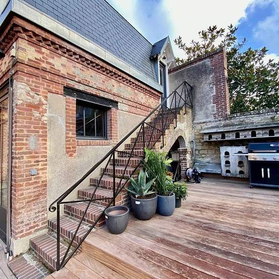 Magnifique villa Houlgataise à 50 mètres de la plage, entièrement restaurée avec des belles prestations et des beaux volumes, comprenant au rez de chaussée en accès terrasse exposition sud, un grand salon lumineux, une salle à manger avec une cuisine entièrement aménagée et équipée, wc, au 1er étage, 2 chambres avec lits doubles et salle de douche, 1 chambre avec 7 lits simples et salle de douche, wc, une belle pièce de jeux, au 2ème étage, une chambres avec lit double et une salle de bain. L'ensemble sur un beau jardin d'environ 300 m2 et p...