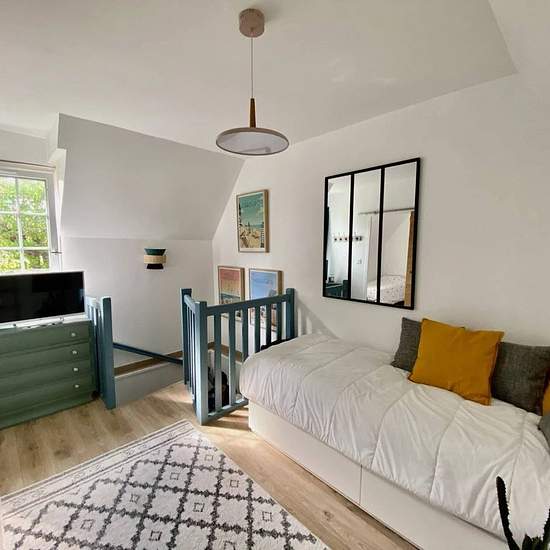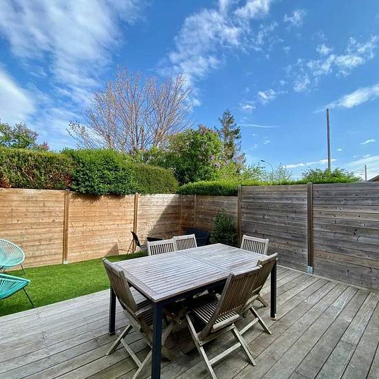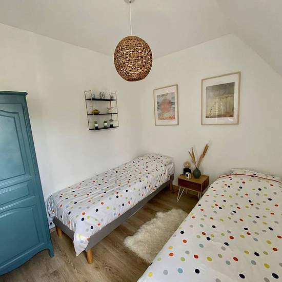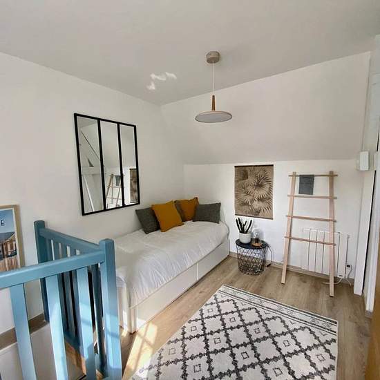 Cette maison se situe dans un environnement calme et à seulement 10 minutes à pied du centre ville et des commerces, elle se compose au rez de chaussée d'une belle pièce de vie avec coin cuisine entièrement équipée, avec d'un côté une courette et de l'autre une belle terrasse d'environ 50 m2, wc, à l'étage, un grand palier (canapé lit 160) distribuant une chambre avec 2 lits simples et une salle de douche. Place de parking extérieur. Idéal pour une famille de 4 personnes.