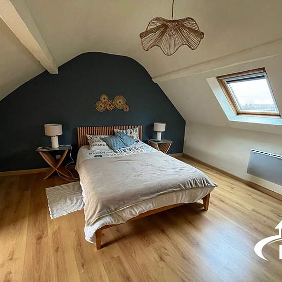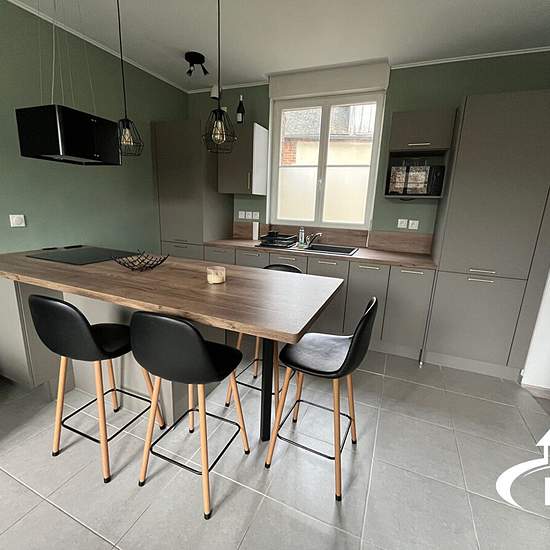 Belle prestation - Maison de ville de 68 m² comprenant au rez-de-chaussée entrée, séjour de 21 m² avec belle cuisine aménagée et équipée (plaque, four, hotte, frigo), WC. Au premier étage grande chambre d'environ 14 m², salle de bains avec baignoire. Au deuxième étage, palier et une chambre de 12 m² LC. Chauffage électrique. PAS D'EXTERIEUR. LIBRE DEBUT MARS.