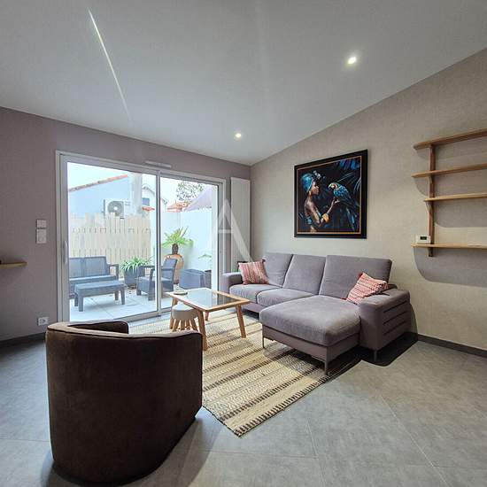 L'Adresse Jade Immobilier - LA BERNERIE EN RETZ Location meublée - DISPONIBLE IMMEDIATEMENT Pavillon de plain-pied de 2018 d'une surface de 54.73 m², comprenant : -Une vaste entrée équipée de rangements toute hauteur ; - Une cuisine ouverte entièrement aménagée et équipée, prolongée par un séjour lumineux et convivial. La pièce de vie s'ouvre sur une terrasse clôturée, sans vis-à-vis, parfaite pour profiter des beaux jours. L'espace nuit se compose d'une chambre dotée d'un dressing et de deux fenêtres, ainsi que d'une salle d'eau moderne et ...