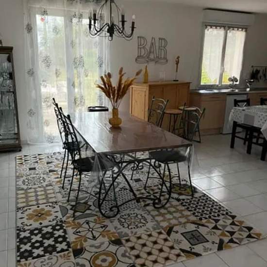Loue maison T4 meublée de 74m2, état neuf à Louargat sur terrain de 500 m2 avec terrasse exposée sud dans un quartier calme. Elle comprend également un carport et une pièce pour le mobilier de jardin (1 table, 4 chaises, 1 parasol, 1 transat) avec un cour gravillonnée à l'avant et de la pelouse sur le côté et derrière avec un barbecue et un étendoir à linge. Le rez-de-chaussée est composé d'une entrée donnant sur une grande pièce à vivre avec cuisine aménagée et équipée (1 table, 4 chaises, 1 lave vaisselle, 1 réfrigérateur, 1 congélateur, 1...
