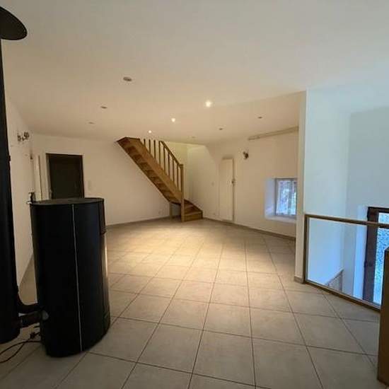 Nous proposons à la location une charmante petite maison de village. Au rez-de-chaussée, elle se compose d'une entrée, d'un grand séjour équipé d'un poêle à granulés, ainsi que d'une cuisine entièrement équipée avec hotte, plaque de cuisson, four et four micro-ondes. Vous trouverez également à ce niveau une chambre, une salle de bains, un WC et une buanderie. À l'étage, la maison dispose d'une grande pièce pouvant être utilisée comme chambre supplémentaire ou salle de jeux, ainsi que d'un grenier. La maison bénéficie également d'un grand gar...