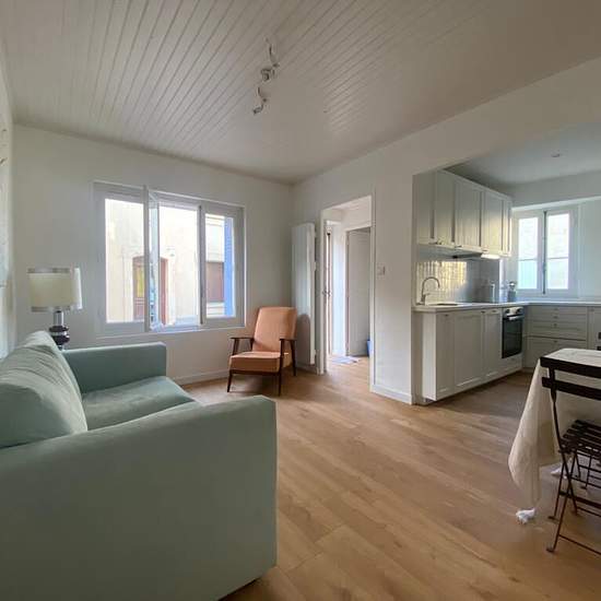 Au cœur de Mudaison, à proximité immédiate de la Place de la République et des commerces. Pièce de vie avec cuisine ouverte entièrement équipée, wc et salle d'eau au rez de chausée, et à l'étage, une chambre et un bureau Chauffage électrique.