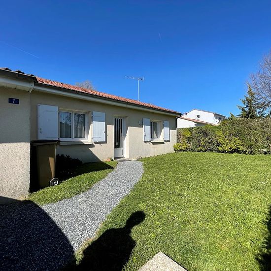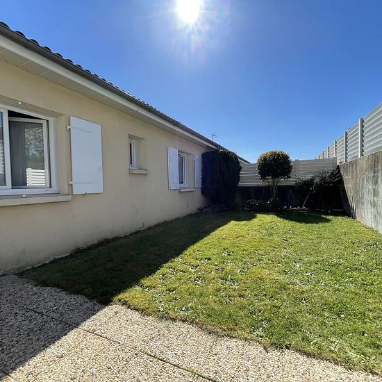 Je vous propose ce joli pavillon de plain pied au calme mais très proche du centre de Nuaillé. Il propose sur 73 m² un séjour de 30 m² + une cuisine de 10 m²fermée, 2 chambres avec jardin et terrasse. Garage 1 voiture et coin laverie. Libre le 02/05/2026