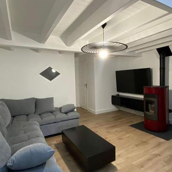 Le Cabinet Immobilier Desvallois propose à la location une maison rénovée et meublée. Elle comprend au rez-de-chaussée, une cour d'accueil, un séjour/salle à manger avec un poêle à granulés, avec placard, une cuisine ouverte aménagée et équipée, un cellier avec machine, une salle de bains, un WC. Au premier étage, un palier avec une climatisation réversible et deux chambres. Le bien est soumis à l'assurance des loyers impayés Libre à partir du 14 janvier.