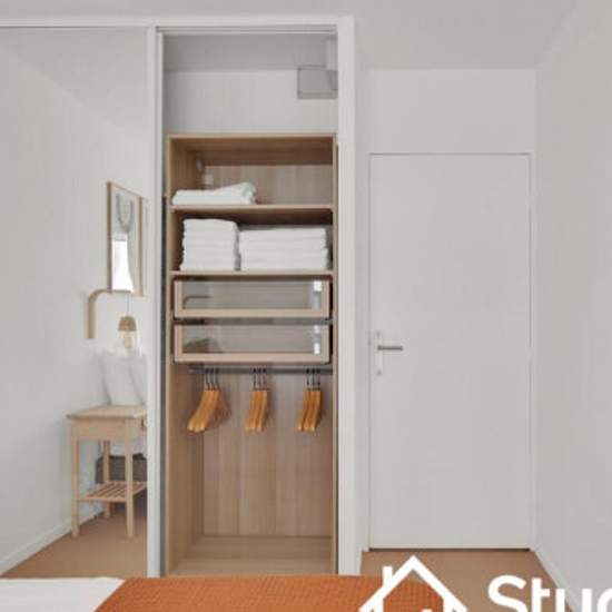 Grand 2 pièces avec Parking haut de gamme, moderne et lumineux avec une chambre à coucher équipée d'un lit Queen Size, d'une télévision 4K, d'une armoire et d'un spacieux séjour avec salle à manger, écran TV 4K, bureau et canapé-lit. La cuisine est particulièrement agréable et totalement équipée : four, plaques, micro-onde, réfrigérateur/congélateur, machine à caché, etc WC séparé et baignoire dans la jolie salle de bain. L'appartement se trouve à seulement quelques mètres du Supermarché Carrefour, du Drive Auchan, d'une boulangerie, de comm...
