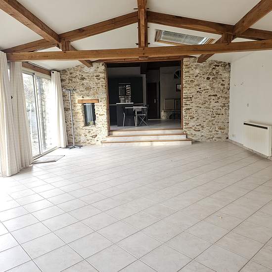 La première maison se compose, au rez-de-chaussée, d'une entrée pouvant servir de bureau ou de chambre, d'une cuisine équipée rénovée en 2021 avec cheminée à insert, d'une salle de bains avec baignoire balnéothérapie, douche et d'un WC séparé. À l'étage, vous trouverez une grande pièce palière ainsi que deux chambres sous combles. Au centre de l'ensemble, une véranda de 43 m2 équipée d'un poêle à bois relie les deux habitations. La seconde maison comprend, au rez-de-chaussée, une entrée donnant sur une cuisine équipée, un salon borgne avec p...