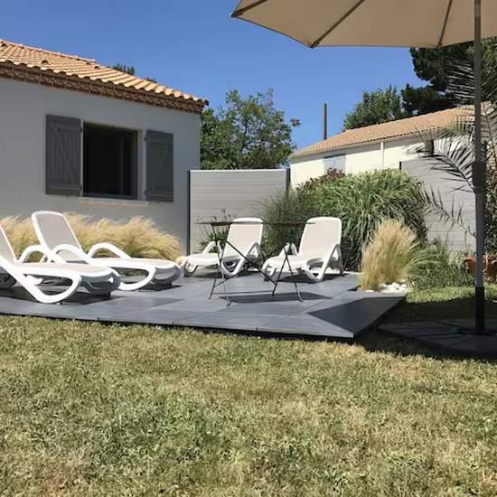 LOCATION VACANCES et TARIF A LA SEMAINE - Charmante maison de plain pied, aux volets gris souris, d environ 80 m2, vous invite par une entrée dans sa lumineuse pièce de vie, une cuisine semi ouverte, un couloir desservant deux belles chambres (lit double), une salle de bains, des toilettes séparés. Un agréable jardin clos, baigné de soleil et ses terrasses dont une couverte. Mobilier de jardin à disposition et barbecue.
