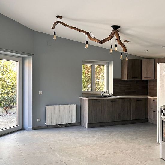 SAINT AMARIN Maison 2 pièces 62.81m² avec terrasse et parking. Maison neuve de 62.81m² alliant charme naturel et prestations modernes située dans un environnement paisible au fond d'une cour privative. La maison est composée d'une entrée donnant sur une belle pièce de vie lumineuse avec poêle à granules et accès terrasse, d'une cuisine ouverte entièrement équipée, d'une salle d'eau, d'une chambre, d'un WC ainsi que d'un espace buanderie avec placards. 1 place de parking complète le logement. DISPONIBLE DE SUITE