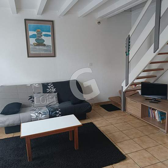 Dans copropriété maison meublée mitoyenne comprenant: RDC: pièce de vie avec coin cuisine, cellier, salle de bains avec WC. Etage: palier, 2 chambres, WC. Petit terrain devant. 1 place de parking. Disponible de suite. Loyer 526.89 euros + 73.77 euros de provision sur charges pour l'électricité. Dépôt de garantie : 526,89 Euro Honoraires de location à la charge du locataire: 265 euros - Honoraires d'état des lieux à la charge du locataire : 135 euros.