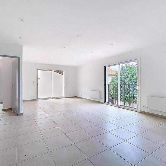 SAINT FELIU D'AVALL MAISON DE VILLAGE NEUVE AVEC GARAGE ET PATIO - A la sortie de Saint Féliu d'Avall (direction Perpignan), maison neuve à étrenner. En rez de chaussée : un garage de 37m². Au 1er étage : entrée avec placard, séjour avec cuisine ouverte (47m²) vue dégagée sur les champs de pêchers et accès au patio, deux chambres avec placards, salle d'eau, WC séparés. Prestations de qualité. Disponible 10/02/2026. Loyer de 870,00 euros par mois charges comprises dont 20,00 euros par mois de provision pour charges (soumis à la régularisation...