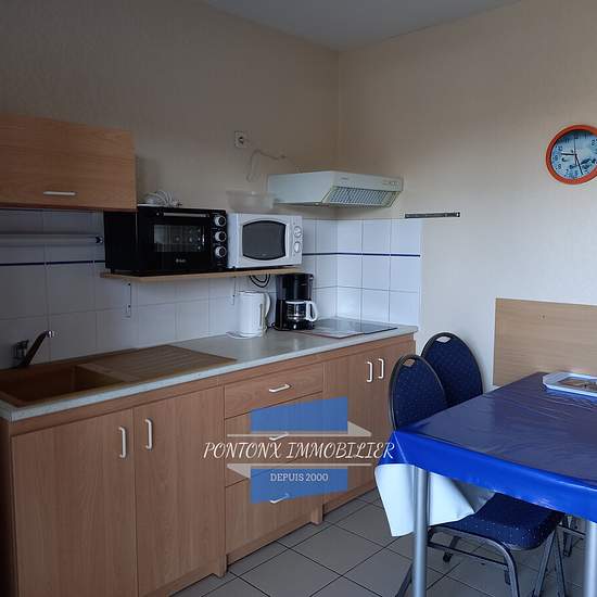 Maison mitoyenne meublée climatisée de plain pied comprenant cuisine/séjour, salle d'eau, wc, chambre avec placard. Terrasses avant et arrière du logement. Parking. Laverie commune automatique Libre PLUSIEURS BIENS SONT DISPONIBLES SUR LA RESIDENCE Loyer 517 ¤ charges 24 ¤( forfait eau 9 ¤, provisions 4 ¤ de taxe d'ordures ménagères et 11 ¤ entretien climatisation) Dépôt de garantie 517 ¤ Honoraires agence à la charge du locataire 305 ¤ dont 83¤de frais d'état des lieux
