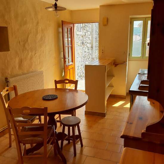 Maison de village meublée de 65 m² composée d'une cuisine, séjour, 1 chambre, un espace bureau et une terrasse. Proche stationnement et commerces.