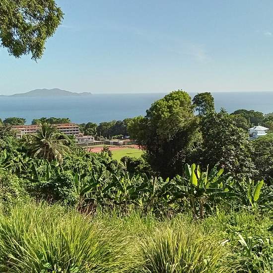 Au sein d'un vaste parc arboré sur les hauteurs du bourg charmante maison T2 louée non meublé dans un secteur résidentiel calme 2 autres maisons de même type sont érigée au sein de la propriété proche du centre ville et de ses commodités et non loin de la plage de grande-Anse portail électrique