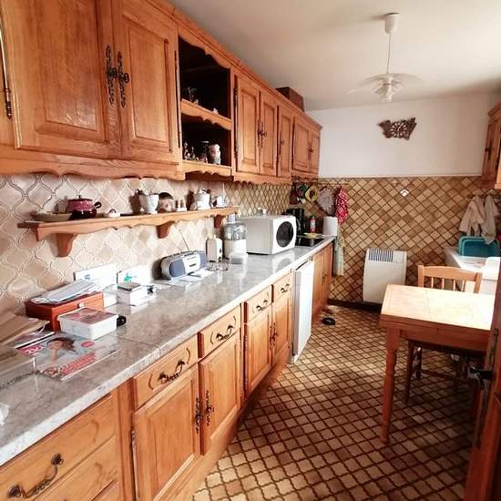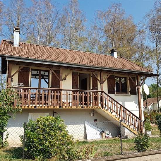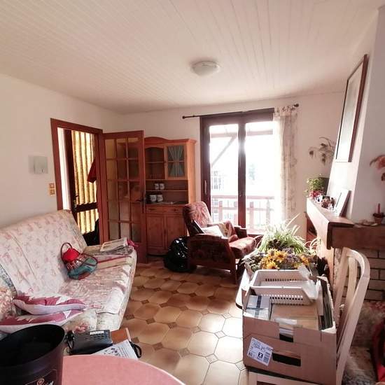 Maison individuelle sur sous-sol composée d'une entrée, d'un salon ouvert sur séjour avec cheminée, d'une cuisine équipée, d'une salle d'eau, d'une chambre et d'un wc. Le sous sol comprend un garage, une buanderie et une autre pièce.
