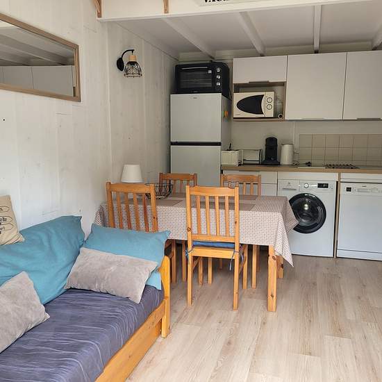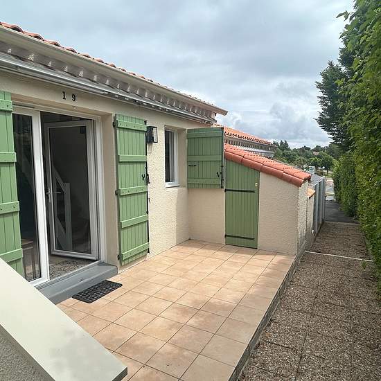 Maisonnette mitoyenne d'un côté, rénovée sans vis-à-vis au calme avec terrasse exposée sud (12.70m²)(salon de jardin, bbq électrique, store ban), parking. 550m plage de Nauzan/ pistes cyclables, front de mer avec restaurants et bars, club nautique. Comprenant: séjour(TV)/cuisine (lave-vaisselle, lave-linge, plaques citro-céramique, mini-four et micro-ondes, frigo-congel), salle-d'eau/WC, 1 chambre lit 140. Mezzanine: 1 lit 140 Du 7 au 21 juin : 375 euros la semaine Du 05 au 12 juillet: 500 euros la semaine Du 12 au 26 juillet: 563 euros la s...