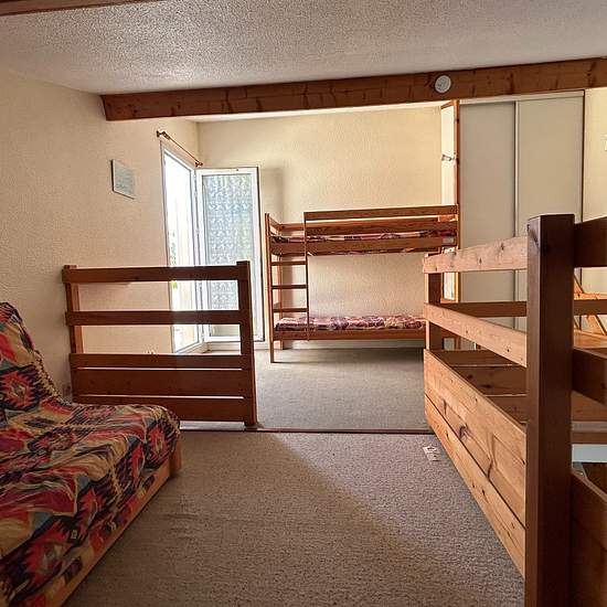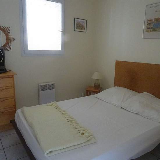 Maisonnette mitoyenne d'un côté, dans petite résidence avec piscine collective (15x8m). 100m U express et petits commerces, 650m plage du Conseil. 1,5 km Casino de Pontaillac. Séjour/kitchenette (réfrigérateur-top, mini-four, micro-ondes, lave-linge), 1 chambre avec lit de 140 + TV, salle-d'eau/WC. Sur mezzanine: 2 lits superposés de 70 + 1 canapé. Terrasse étage Terrasse rez-de-chaussée, jardinet privatifs. Piscine collective Surfaces et distances données à titre informatif et non contractuel. du 31/05 au 21/06: 375E la semaine du 21/06 au ...