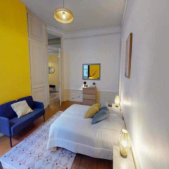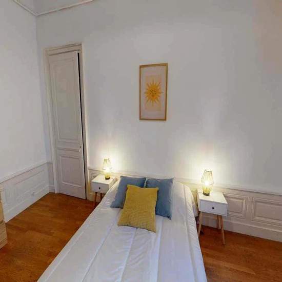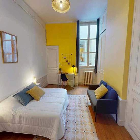 Inquilini all'interno della struttura / Tenants inside the building: 1) Male, Worker, 32 2) Female, Worker, 27 3) Male, Student, 22 4) Male, Student, 19 5) Female, Student, 32 6) Male, Worker, 30 EN This lovely private bedroom in a fully equipped, furnished and all-inclusive flatshare in Lyon is a mix of comfort and design. It has got household furnishings, including a bed with pillows and duvet What is missing is your things to feel at home! The room can be locked if you need intimacy. The flatshare can be found in the Hôtel de Ville - Pres...