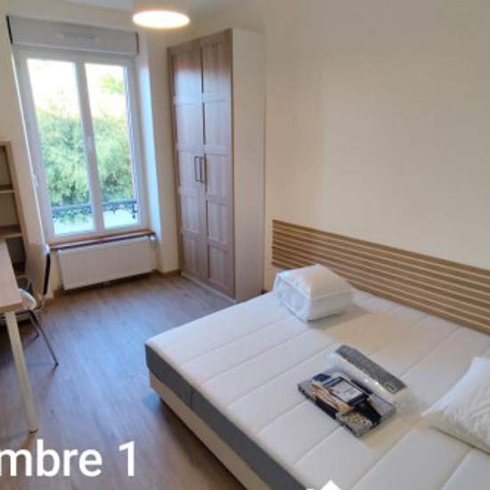 1 chambre(s) libre(s) dans une colocation de 1 chambres dans une maison de 128m2 Dans le cadre d'une colocation, nous proposons à Reims, 1 chambre avec bureau privatif et salle de douche/wc privative dans une colocation meublée de 5 pièces, état neuf, classe C; de préférence non fumeur. La chambre comporte 2 espaces + 1 salle de douche: - l'entrée fait 2m2 et comporte des rangements - l'espace couchage fait 10m2, et comporte un lit en 160, une penderie, et un bureau + étagères ; - l'espace bureau privatif fait 8m² et comporte un canapé, un b...