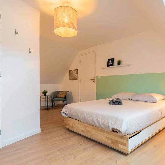 VOTRE CHAMBRE TRES PRIVEE Chaque chambre dispose d'un lit de 140x200 et sa literie complète, un bureau, un dressing et une salle de bain privative comprenant WC, vasque et douche. Les draps et serviettes sont également fournis. DES ESPACES COMMUNS A PARTAGER AVEC UNE SUPER COMMUNAUTÉ Ce coliving est une maison chaleureuse, à taille humaine, dont les espaces de vie sont partagés par 11 personnes. Les espaces communs comprennent un salon, une salle à manger, une cuisine, une buanderie et un jardin de 100 m2. Tous ces espaces sont meublés, équi...