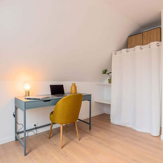 VOTRE CHAMBRE TRES PRIVEE Chaque chambre dispose d'un lit de 140x200 et sa literie complète, un bureau, un dressing et une salle de bain privative comprenant WC, vasque et douche. Les draps et serviettes sont également fournis. DES ESPACES COMMUNS A PARTAGER AVEC UNE SUPER COMMUNAUTÉ Ce coliving est une maison chaleureuse, à taille humaine, dont les espaces de vie sont partagés par 11 personnes. Les espaces communs comprennent un salon, une salle à manger, une cuisine, une buanderie et un jardin de 100 m2. Tous ces espaces sont meublés, équi...