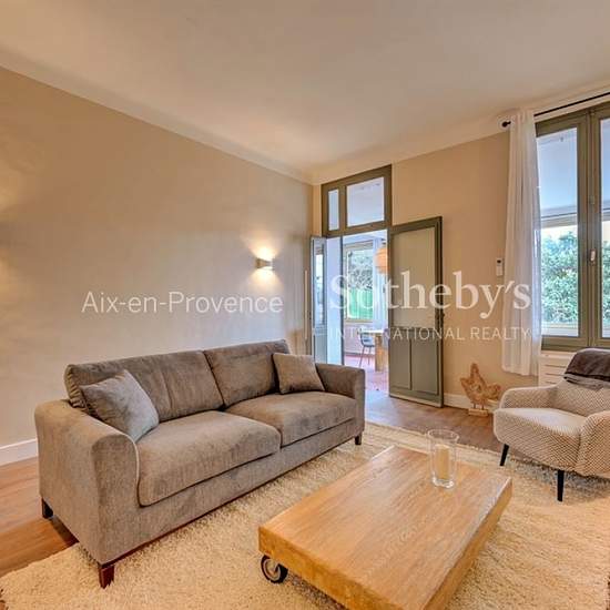 Dans le centre ville d'Aix En Provence, T3 meublé de 110m2, au rez-de-chaussée d'un bel immeuble avec ascenseur. Cet appartement se compose d'une entrée, un séjour, 2 chambres, une cuisine entièrement équipée, une salle d'eau, un WC séparé, une buanderie, une magnifique véranda plein sud, double vitrage. On y trouve également l'air conditionné, ainsi qu'une cave. Loyer 2400 Euros + 100 Euros de charges. Mandat 850. Sotheby's International Realty Aix En Provence. LA Réference immobiliére des biens de prestige à Aix En Provence. Afficher le té...