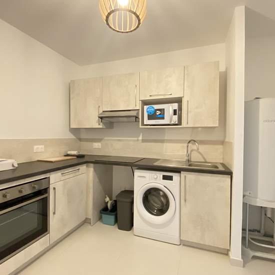 Aix en Provence. La Tour d'Aygosi. A proximité immédiate du Parc de la Torse, des écoles, des commerces, des axes autoroutiers et du centre ville, dans une résidence sécurisée avec ascenseur, au rez-de-chaussée. Appartement de 68. 25m2 entièrement meublé et rénové avec des matériaux de qualité et de grand standing situé au 67 cours Gambetta. Il se compose d'un séjour avec cuisine américaine équipée et meublée, de deux chambres, d'une salle d'eau et d'un WC séparé. Climatisation réversible, placards de rangements Pour votre confort vous dispo...