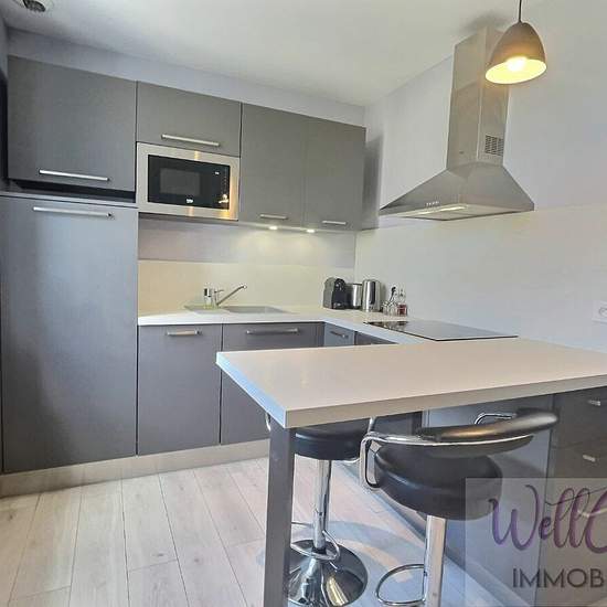 AIX LES BAINS idéalement situé entre ville et lac, proche de toutes les commodités et services, appartement type 3 duplex climatisé à louer meublé à l'année. Au dernier étage d'une petite résidence de charme entièrement réhabilitée, ce logement de 36.10 m² Loi Carrez / 54 m² au sol offre de belles prestations. Il est équipé. Il comprend une pièce de vie avec cuisine équipée ouverte sur le salon, ainsi qu'une élégante salle d'eau avec WC au premier niveau. 2 grandes chambres mansardées occupent l'étage. L'appartement bénéficie de jolies vues ...
