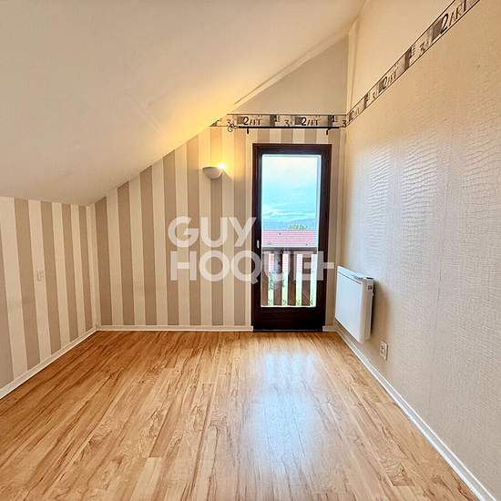 Idéalement situé sur les hauteurs d'AIX LES BAINS, dans une maison divisée en 3 lots, ce T3 de 61 m² au sol, 49.44 m² loi Carrez vous séduira par sa luminosité. Traversant, il comprend une entrée desservant la cuisine aménagée et équipée ouverte sur le séjour avec balcon, wc séparé, dégagement desservant 2 chambres, salle de bains. Les plus : Cave; 2 places de stationnement dont une abritée sous carport, terrasse bois et jardin non attenants. Libre.