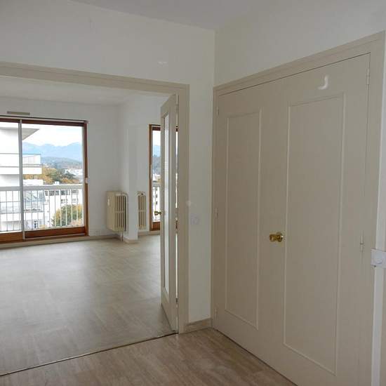 TYPE 3 de 95 M² A LOUER A AIX LES BAINS - LE VICTORIA - 14 AVENUE VICTORIA - CAVE - GARAGE DOUBLE. Ce TYPE 3 de 95 m² se situe au 8ème et dernier étage avec ascenseur d'une résidence idéalement située en coeur de ville. Grand balcon Sud offrant une belle vue dégagée. Entrée avec placard, séjour double bénéficiant de 2 baies vitrées Sud et une baie exposée Ouest, Cuisine équipée (rangements ; four et plaque), 2 chambres dont l'une avec accès balcon, une buanderie, une salle d'eau, WC séparés. Cave et Garage double Visite virtuelle / 360° acce...