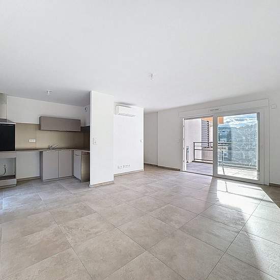 MAX IMMOBILIER propose à la location, cet appartement type T3 de 69.50m², situé au 3ème étage sur 5 avec ascenseur. Il s’agit d’un appartement neuf qui se compose d’une entrée, deux chambres de 12m², un WC séparé. Un couloir distribue la salle d’eau avec douche, sèche serviette et lavabo. Un séjour de 25m² et un coin cuisine de 5m². Une terrasse de 11m² donne sur la colline de SAN ANGELO. ELEMENTS FINANCIERS : LOYER : 900 € C.C +100E GARAGE (Dont 100€de charges locatives incluses dans le loyer avec régul annuelle). ORDURES MENAGERES : 45 € /...
