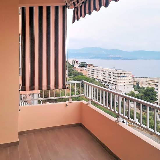 Le Cabinet Organigram vous propose à la location un très bel appartement de type F3 situé sur la Route des Sanguinaires. D’une superficie de 77.30 m², il se compose : D'une entrée, un salon/séjour donnant sur une terrasse de 12 m² une très belle vue mer, une cuisine aménagée séparée, deux chambres, une salle de bains, un dressing, un WC séparé. Séjour climatisé. Renseignements : - EMAIL Honoraires de 1 005 € TTC à la charge du locataire comprenant 232 € TTC pour l'état des lieux. Loyer de base 1167 €/mois. Provision sur charges 69 €/mois, ré...