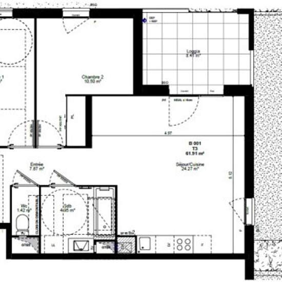 T3 B001 OXYGENE A SAISIR SUPERBE T3 AVEC TERRASSE ET SON BEAUJARDIN PRIVATIF DE 29m² A L'INTERIEUR DEURUNE RESIDENCE NEUVE DE STANDING A FAIBLE CONSOMMATION ENERGETIQUE. Il est composé d'une entrée avec placard, une belle pièce de vie d'une cuisine US (meubles haut et bas, hotte, plaque de cuisson et four) donnant sur la terrasse, deux chambres en sol parquet avec placard, une salle de bain aménagée avec meuble sous vasque et sèche serviette. Deux places de parking en sous-sol. Chauffage individuel gaz. Visiophone. Consommation d'énergie tot...