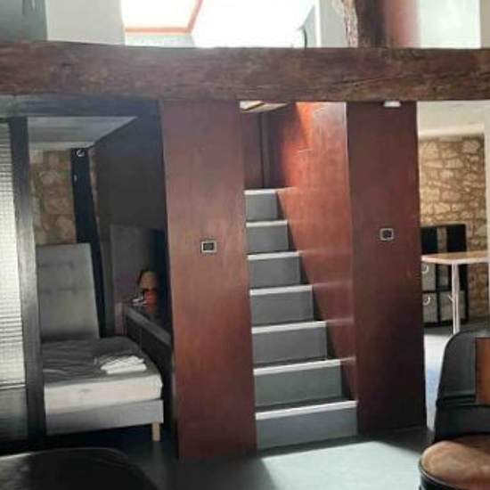 Description : Découvrez ce loft atypique et meublé, niché au 2ᵉ étage d'un immeuble de charme en pierre du XVIIᵉ siècle, en plein cœur d'Angoulême, dans un cadre paisible et calme. Disponible fin août — DPE : D (performance énergétique). Caractéristiques : • RDC : Grand salon/séjour lumineux avec murs en pierre et poutres apparentes, salle à manger, cuisine entièrement équipée, salle de douche moderne, WC séparés, chambre indépendante avec literie 160x200 et rangements intégrés. • À l'étage : Espace mansardé pouvant servir de coin lecture ou...