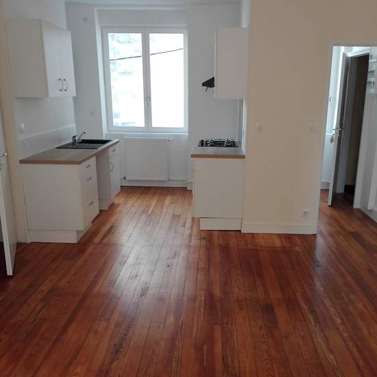Bel appartement de type f3, comprenant : une entrée, une entrée, un séjour, une cuisine équipée et aménagée, un WC, deux chambres et une salle d'eau.