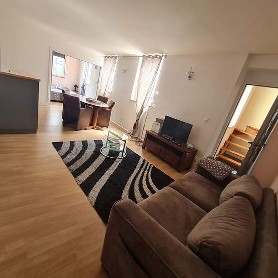 Appartement meublé en hyper centre, proche marché couvert de type f3 : deux chambres plus une avec mezzanine, une cuisine ouverte sur séjour, une salle d'eau et un wc séparé.