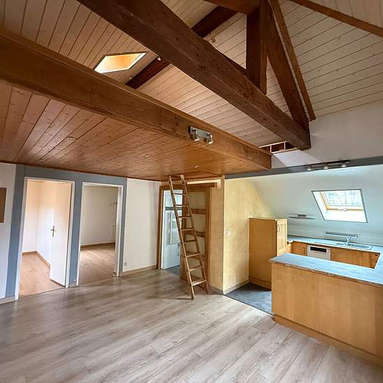 Exclusivité : A louer à Annemasse centre, proche place de l'étoile, au pied du Tram et à 5 min à pied du CEVA reliant GENEVE, appartement T3 au dernier étage avec mezzanine dans une petite copropriété de 2 étages, composé d'une grande pièce de vie avec cuisine équipée, de deux chambres, d'une salle d'eau avec wc. Un jardin privatif de 63 m² faisant office de stationnement est inclus. Loyer hors charges : 1109 euros Provision mensuelle de charges : 10 euros Dépôt de garantie : 1109 euros Frais agence : 693 euros