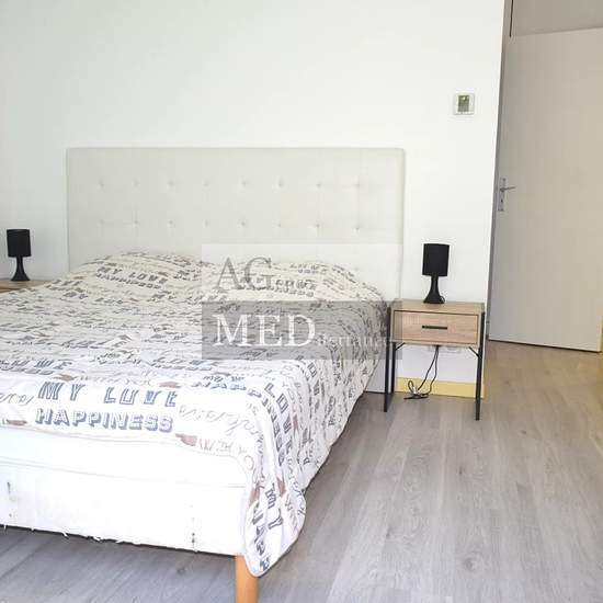 JUAN LES PINS - Quartier Rostagne : Dans une belle résidence avec piscine, 3 PIECES de 77 m² en rez-de-jardin sécurisé, composé de : séjour salle à manger, cuisine séparée, 2 chambres avec salle d'eau privative et WC. Grande terrasse avec barbecue. Garage fermé (box) Climatisation réversible. Fibre.