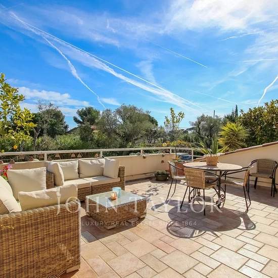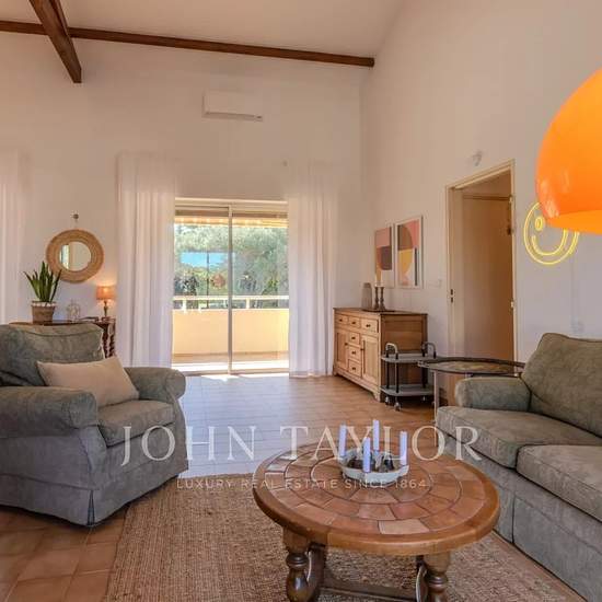 Location saisonnière - Résidence idéalement située à 300 mètres des plages de la Garoupe et bénéficiant d'un tennis et piscine. Bel appartement traversant de type 3 pièces d'environ 86 m2 comprenant une entrée, grand séjour salle à manger, belle hauteur sous plafond. Cuisine indépendante. Toutes les pièces ouvrent sur une terrasse ensoleillée d'environ 30 m2 ainsi que sur un large balcon. 2 chambres dont une en-suite avec salle de douche/toilettes, une salle de bains/toilettes. Les deux chambres ouvrant sur le balcon. Place de stationnement ...