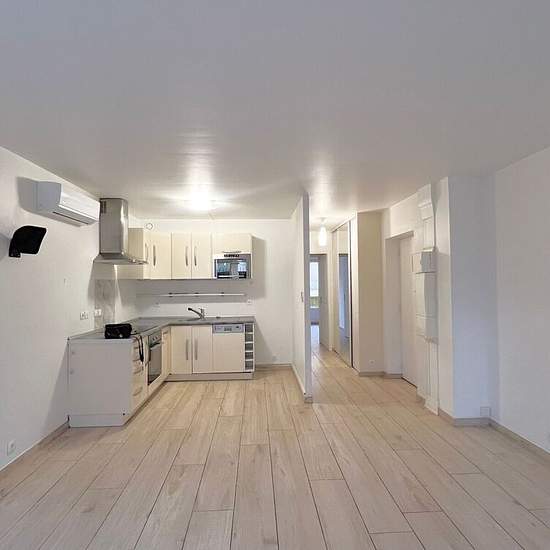 Appartement À Louer. Appartement en rez-de-chaussée comprenant une entrée, un séjour lumineux ouvrant sur un jardin, une cuisine aménagée et entièrement équipée. Un dégagement dessert deux chambres donnant accès à une terrasse, une salle de bains ainsi que des WC séparés. Le bien dispose également d’une place de parking et est équipé d’un système de chauffage et de climatisation par pompe à chaleur.