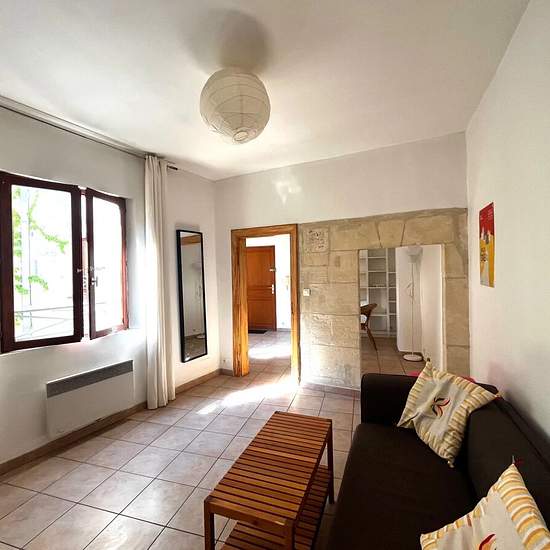 A louer, appartement meublé en centre ville, rue Portagnel. D'une superficie de 67 m2, il est situé au 1er étage d'un immeuble. Il se compose d'une salle a manger donnant sur une cuisine, 1 salon séparé et 2 chambres dont une donnant sur une agréable terrasse mi couverte, une salle de bain et wc. Il vous séduira par son charme avec mur en pierre de Fontvielle et son agencement atypique en U. Appartement traversent et très lumineux. idéalement situé a deux pas des arènes, de la gare et du centre ancien. Les charges comprennent l'eau, TOM et c...