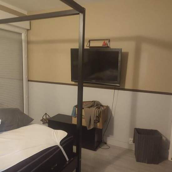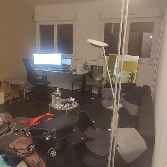 Appartement de 55 m² à louer sur Aubergenville Bonjour, Veuillez nous excuser pour la qualité des photos : nous sommes en plein déménagement donc c'est le bordel. Pour les visites l'appartement sera nickel. Idéal pour une famille ou des colocataires - Chambre parentale avec lit baldaquin queen size + TV + accès balcon - Chambre secondaire avec actuellement un lit superposé destiné à une chambre d'enfants : lit queen size en bas, lit 1 place en haut, et 1 lit une place supplémentaire au sol en tirant le tiroir sous le lit (c'est un lit supplé...