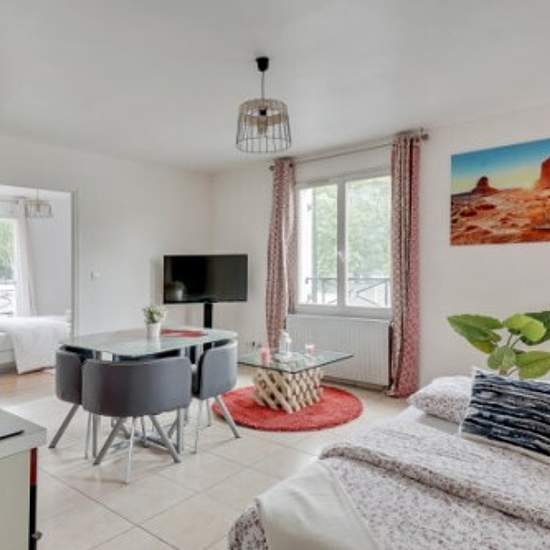 Magnifique appartement de 47 m² mis à votre disposition lors de vos différents déplacements, qu'ils soient professionnels, familiaux, et/ou entre amis. Pouvant accueillir jusqu'à 06 personnes, ce logement allie charme et élégance, tout en vous offrant des espaces spacieux au design attrayant, pour votre plus grand plaisir. Il est très bien équipé et dispose d'une buanderie dans le bâtiment. Le logement compte 02 chambres, l'une avec un grand lit et l'autre avec deux lits simples. La salle de séjour comprend un canapé-lit double, qui peut êtr...