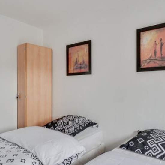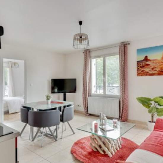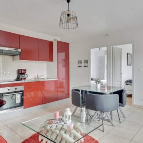 Magnifique appartement de 47 m² mis à votre disposition lors de vos différents déplacements, qu'ils soient professionnels, familiaux, et/ou entre amis. Pouvant accueillir jusqu'à 06 personnes, ce logement allie charme et élégance, tout en vous offrant des espaces spacieux au design attrayant, pour votre plus grand plaisir. Il est très bien équipé et dispose d'une buanderie dans le bâtiment. Le logement compte 02 chambres, l'une avec un grand lit et l'autre avec deux lits simples. La salle de séjour comprend un canapé-lit double, qui peut êtr...