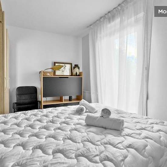 Welcome to this sumptuous flat with a 12m2 terrace in the heart of Aubervilliers, which can accommodate up to 6 people! With a large living room bathed in natural light, a fully equipped kitchen, 2 large bedrooms and a beautiful terrace; This flat is the ideal choice for those looking for a peaceful stay in Aubervilliers. This flat, designed to offer comfort and functionality, comprises : - A fully equipped and functional kitchen, including fridge, freezer, hob, extractor fan, Nespresso coffee machine, toaster, kettle, oven... - A pleasant, ...