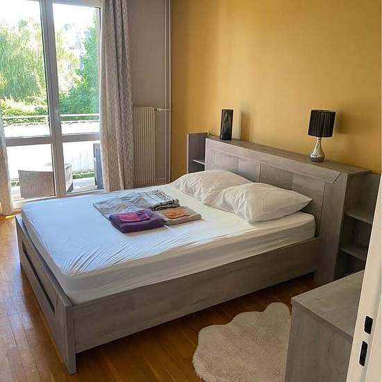 A louer f3 de 70m2 meublé, avec balcon et place de parking privé dans une résidence sécurisée. Très bien situé à 10 minutes à pied de la gare et 15 min à pied du centre ville. Situé au deuxième étage avec ascenseur , Le bien dispose d’une cave et d’un local poubelle + vélo. L’appartement est constitué d’une entrée avec placard intégré , Salon composé d’une table avec 4 chaises , canapé d’angle convertible , table basse et télé. Une cuisine équipée avec frigo , gaziniere , micro ondes et tout le nécessaire pour cuisiner plus une arrière cuisi...
