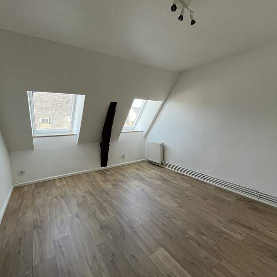 Appartement duplex offrant au 1e étage : salon / séjour, cuisine équipée, salle de bains avec baignoire et douche; au 2nd étage : 2 chambres. Loyer hors charges : 480 eur / m + 30 eur / m charges (taxe om et entretien chaudière). Disponible de suite.