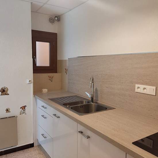 Appartement avec terrasse dans le centre du village de BARJAC , au premier étage, 2 chambres, salon, cuisine, salle d'eau et WC